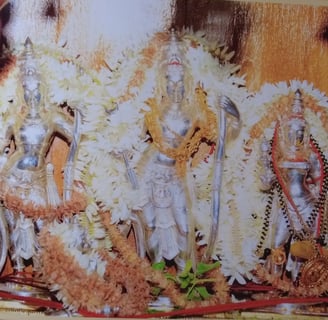 The name Kodandarama refers to Lord Rama wielding the Kodanda bow, a powerful symbol of righteousness and protection in Hindu mythology. In this divine form, Lord Rama is depicted holding his legendary bow "Kodanda," signifying his unwavering commitment to dharma (righteousness) and his role as a protector of the good.